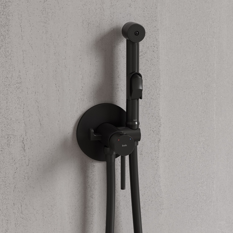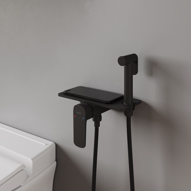 Встраиваемый смеситель с гигиеническим душем, матовый черный, IDDIS, 003BLR0i08