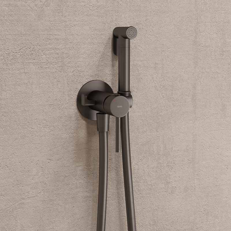 Встраиваемый смеситель с гигиеническим душем, матовый графит, IDDIS, 005GMR0i08