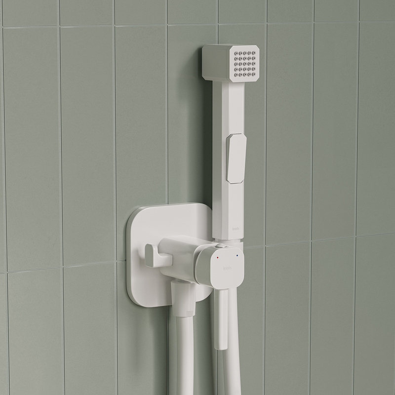Встраиваемый смеситель с гигиеническим душем, белый матовый, IDDIS, 003WTR0i08