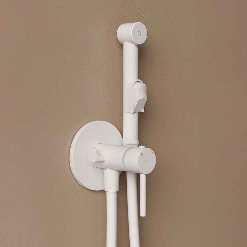 Встраиваемый смеситель с гигиеническим душем, белый матовый, IDDIS, 004WTS0i08