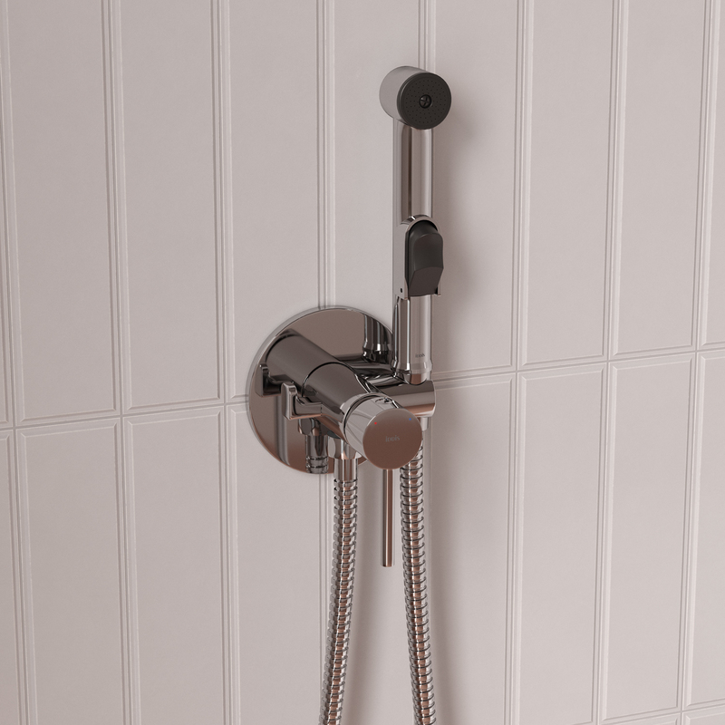 Встраиваемый смеситель с гигиеническим душем, матовый хром, IDDIS, 005BCR0i08